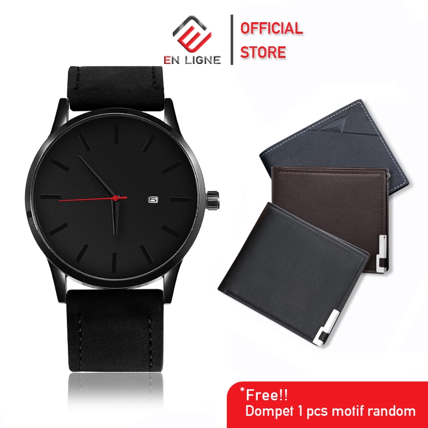 EN LIGNE - Jam Tangan Pria Set - Jam Tangan Gift - Jam Tangan Kado - Jam Tangan Dompet Set - Kado Ultah - Hampers