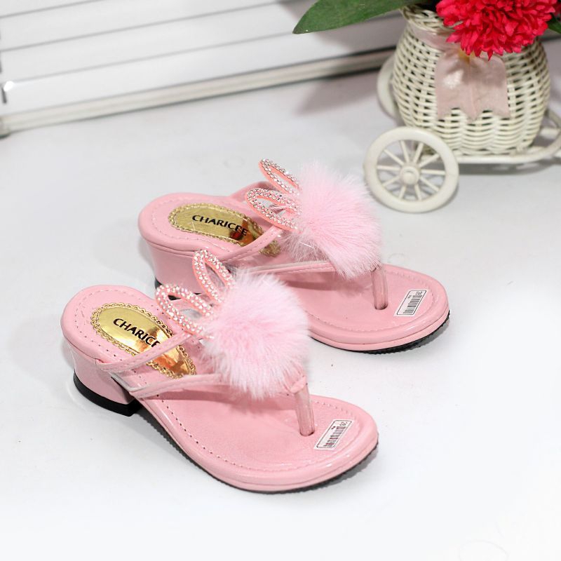 Sandal Anak Perempuan Hak Jepit Mika Bulu Pita Wl 44