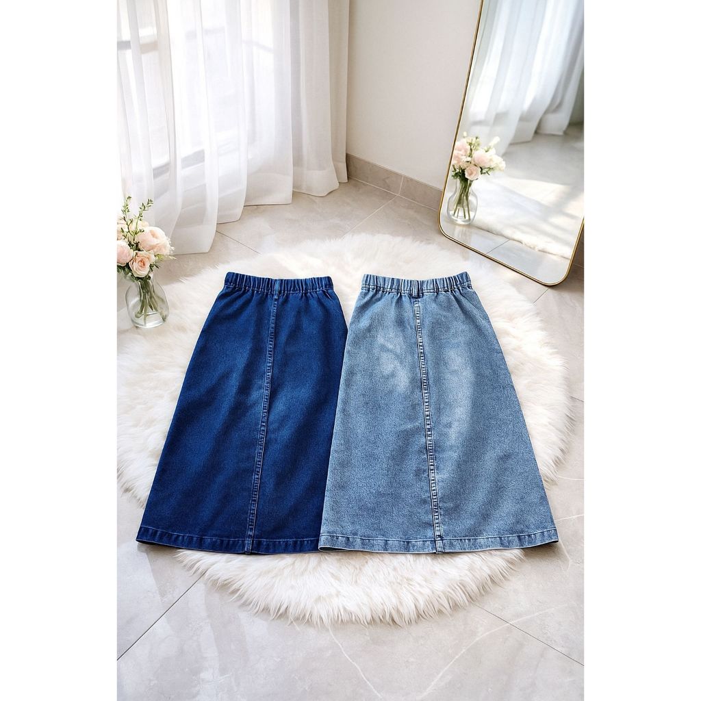 Rok Jeans Panjang Anak Perempuan Rok Bawahan Anak Jeans Premium Usia 3Th-13Th