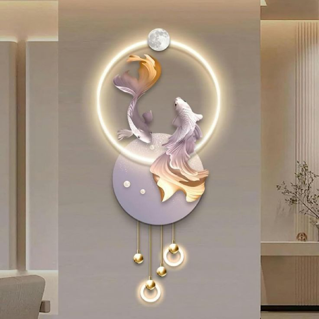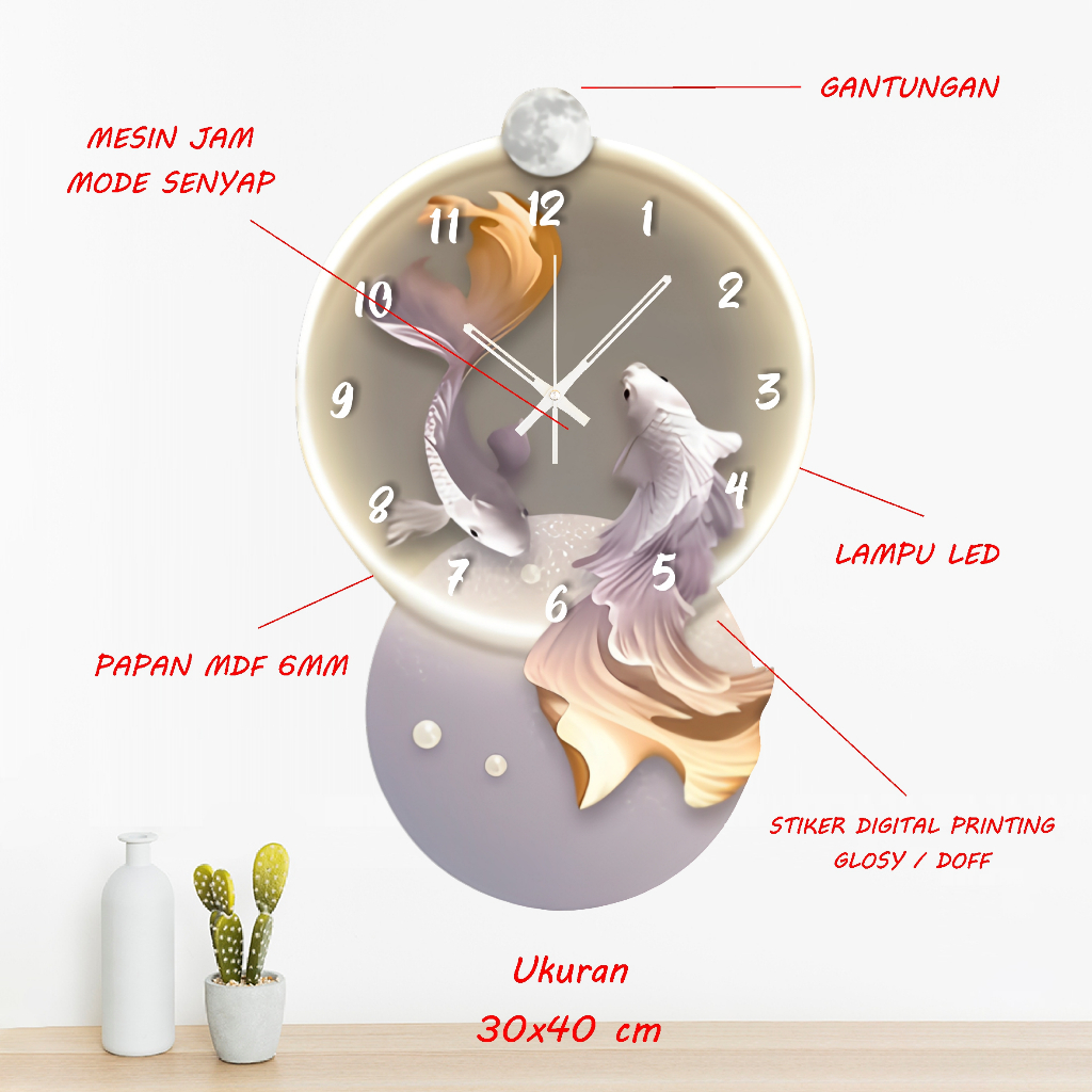Jam dinding kayu karakter kartun ikan koi mas dekorasi pajangan ruangan minimalis binatang lucu imut