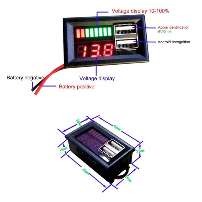 Display Volt Meter Indikator Level Baterai Aki Accu Handphone 2 USB