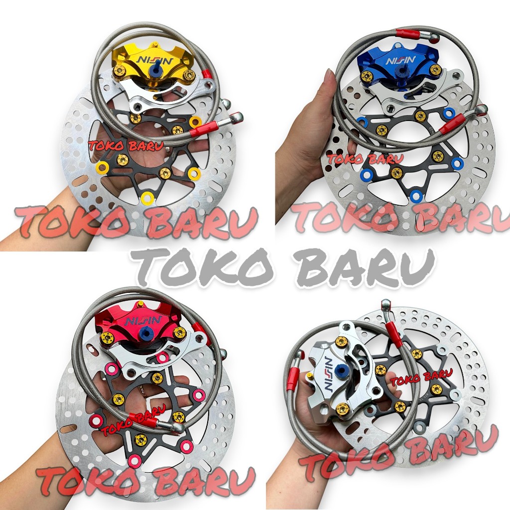 1Paket Kaliper 2Piston + Piringan Disc 220Mm + Selang Rem 90Cm + Baut Disc + Breket 220Mm Beat Vario Scoopy Mio Smile Fi