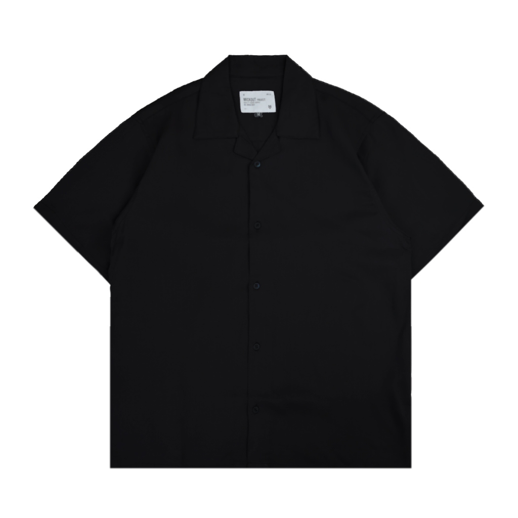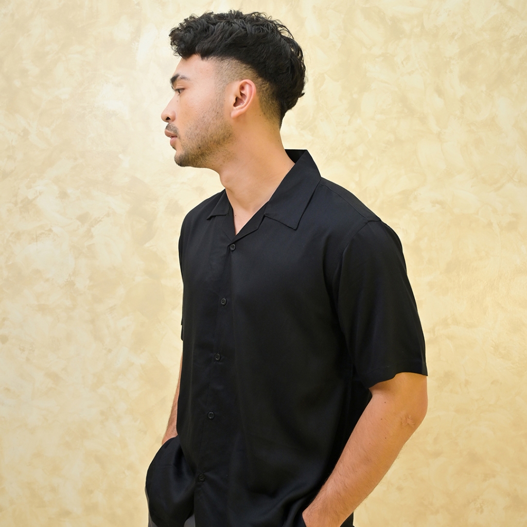 Mick Solid Casual Shirt - Kemeja Kasual Polos Pria Katun Rayon Relaxed Fit Lengan Pendek - Hitam