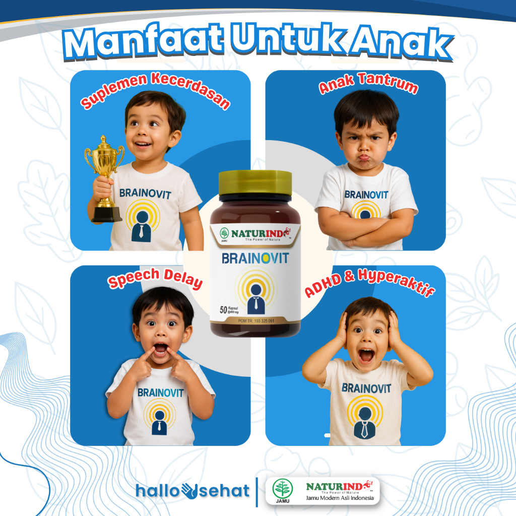 Brainovit Vitamin Otak Anak Cerdas & Dewasa Speech Delay Peningkat Daya Ingat Jamu Herbal Naturindo