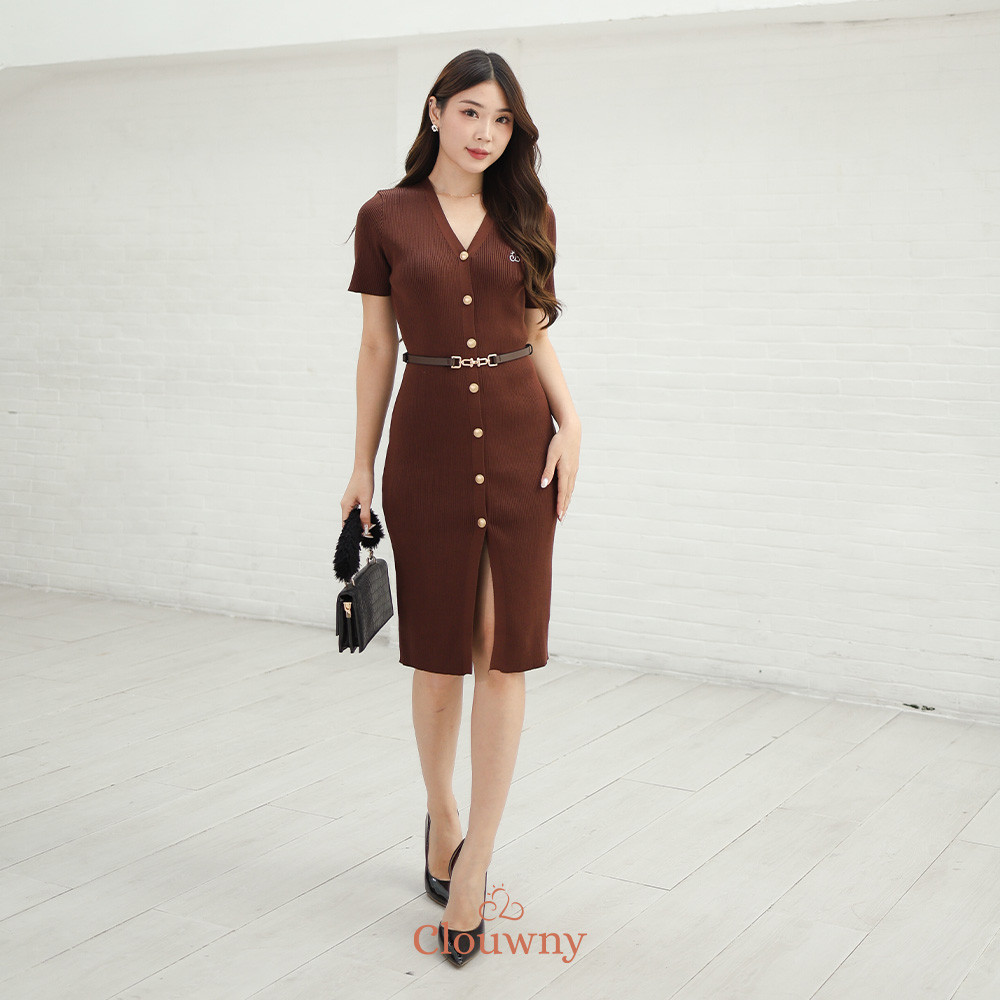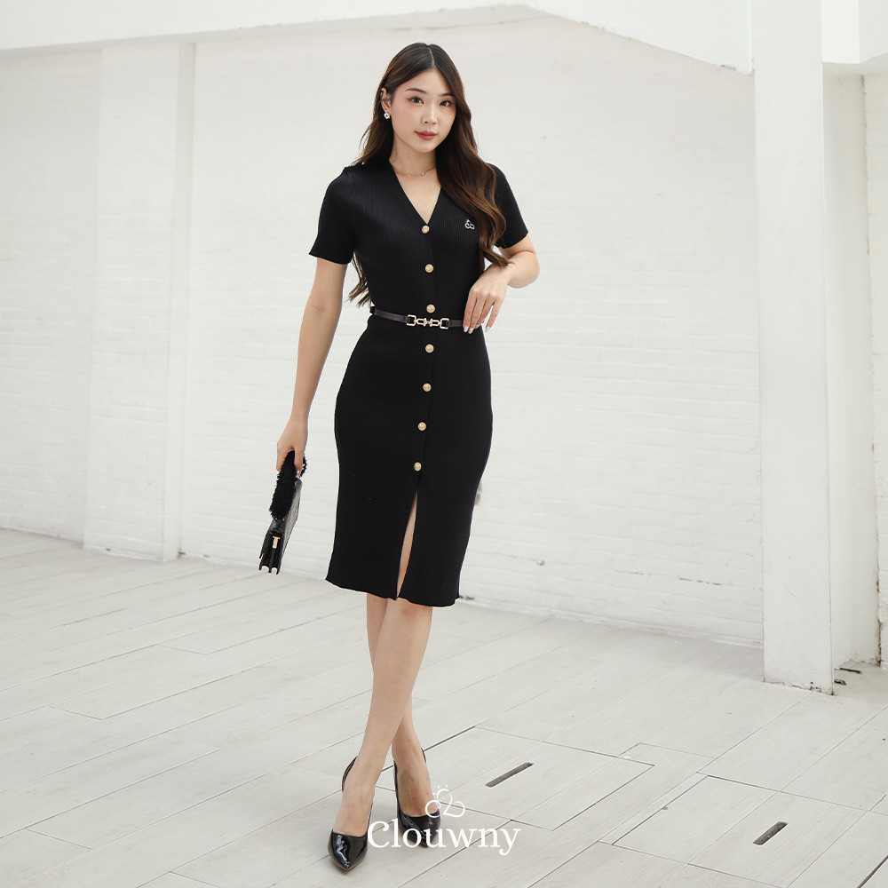 Clouwny Jemina Button Knit Dress Mini Casual Wanita Premium Knitt Fit to XXL