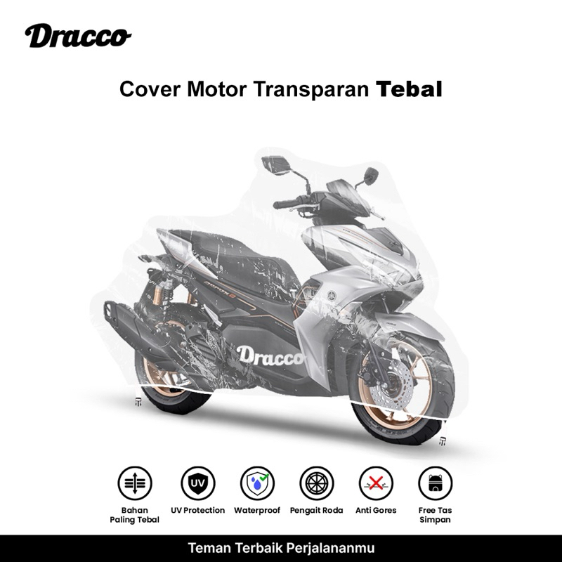 Cover Motor Transparan Premium Dracco Tebal-Sarung Anti Air & Debu, Waterproof, Uv Protection + Tas