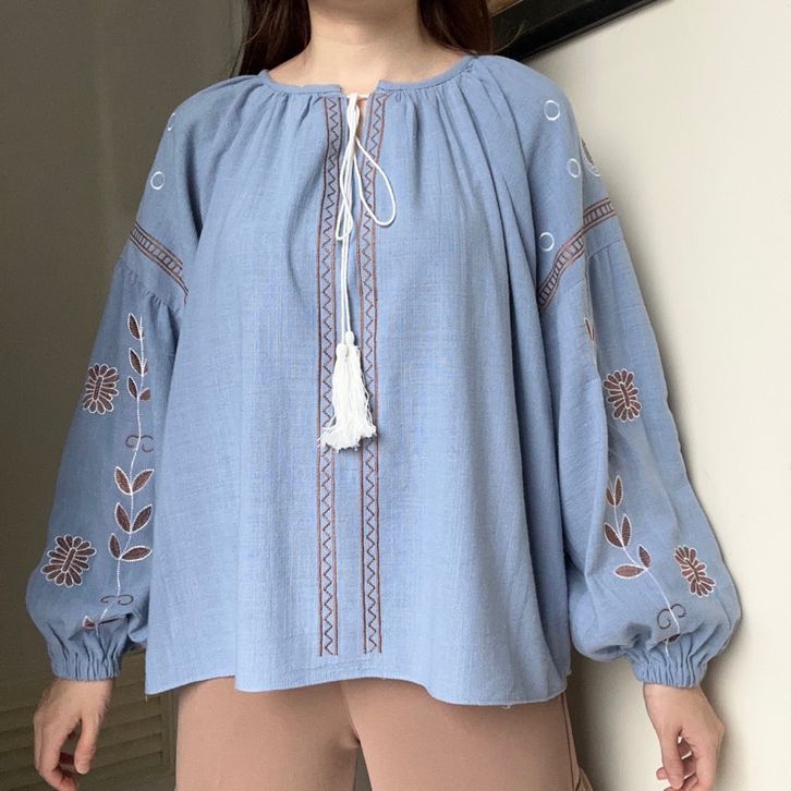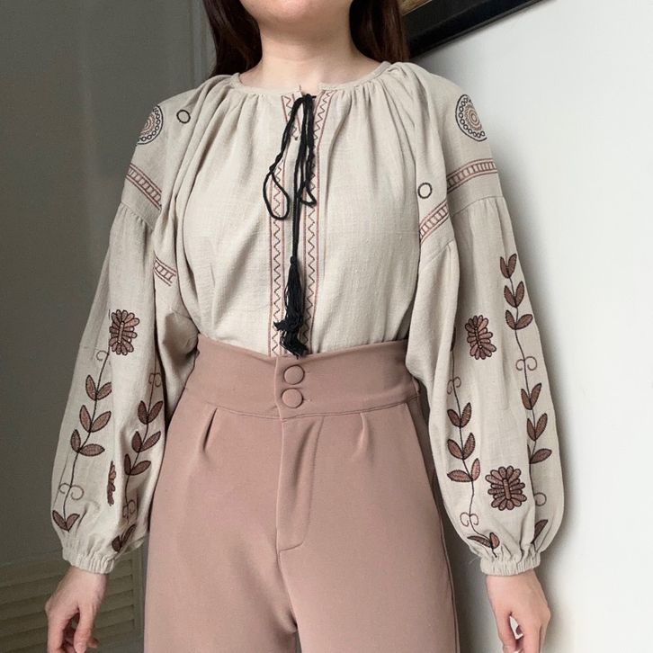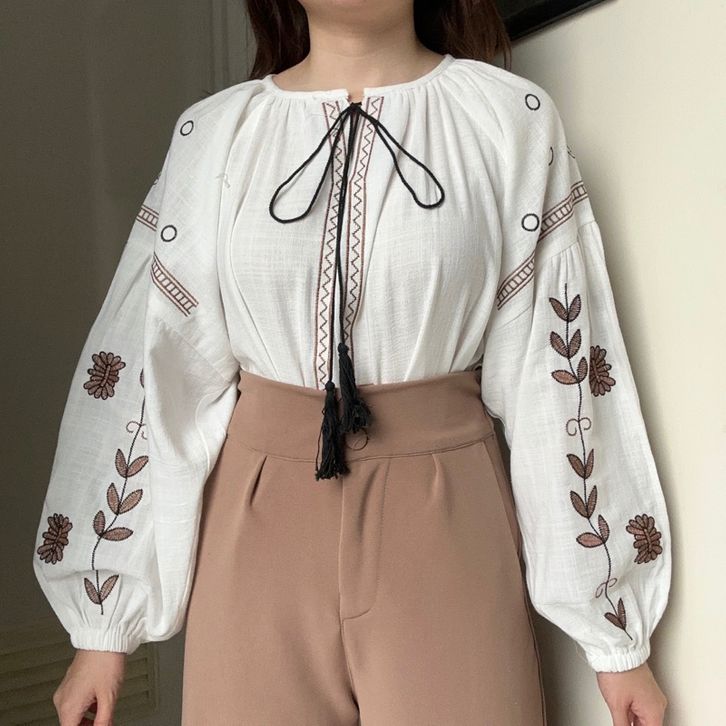 Blouse Wanita Bordir Lengan Balon Vintage Korean Style Atasan Casual Elegan Tali Leher Trendy 2026