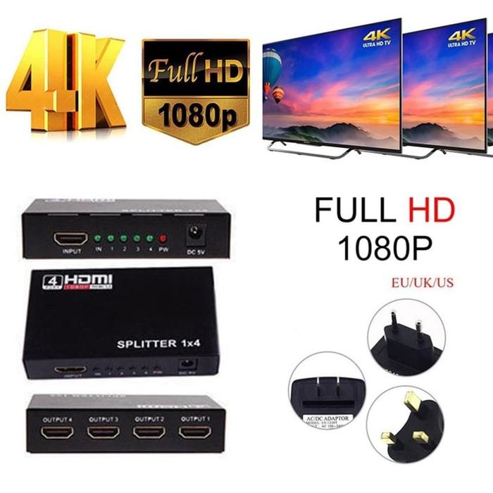 HDMI Splitter 1 In 4 Out 4 Port Hub Split Repeater Amplifier V1.4 3D