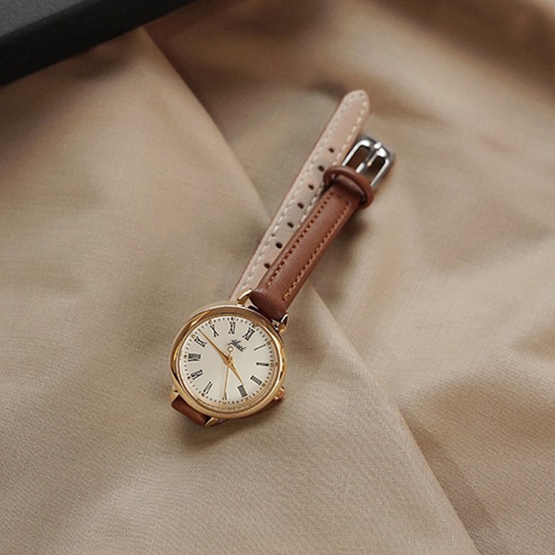 Jam Tangan Jhui Kecil Wanita Analog Dial Bulat Dengan Strap Pu Leather