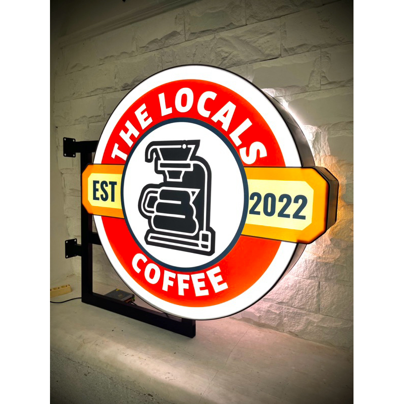 NEON BOX INDOOR OUTDOOR BULAT KOTAK AKRILIK 2 MUKA 1 SISI CUSTOM LASER CUTTING UV BRACKET BESI LOGO