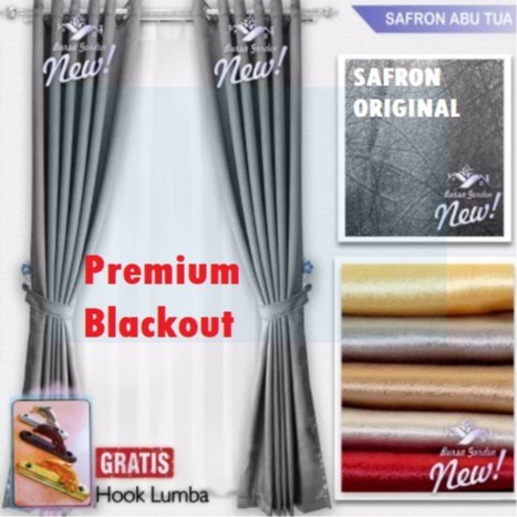 Gorden Jendela Pintu Blackout Premium Import Tebal Corak Safron Minimalis Smokring Panjang Estetik