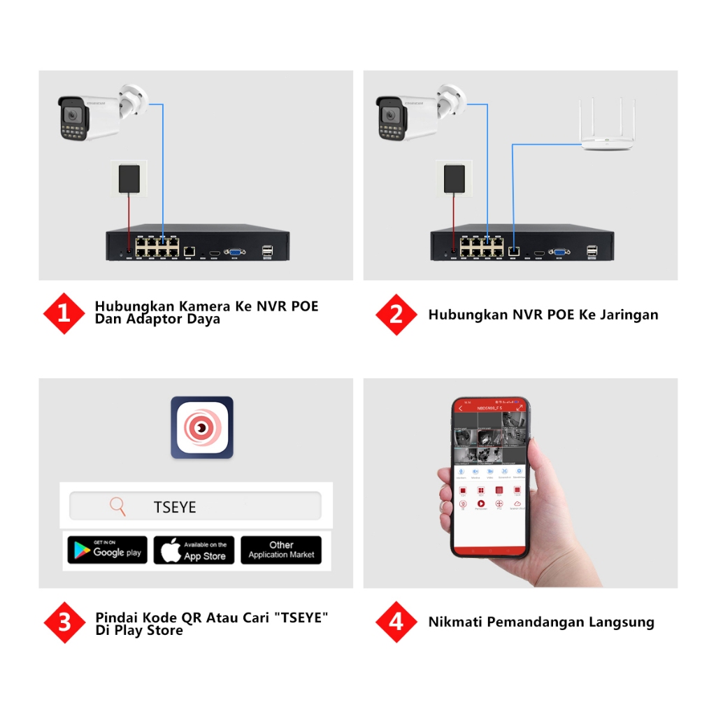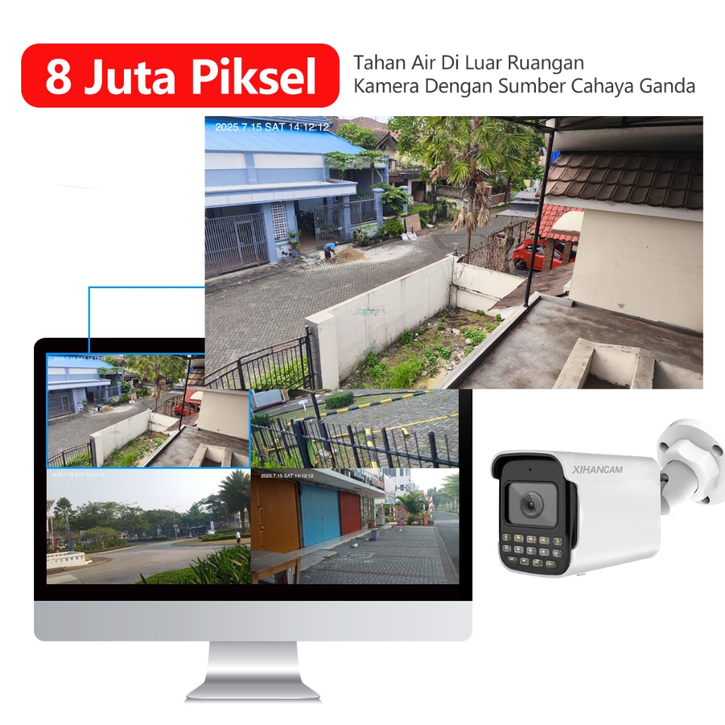 XIHANCAM 8MP Paket CCTV POE 4 Channel 4 Kamera Kit 8MP NVR POE 4K Kamera CCTV Komplit Siap Pasang