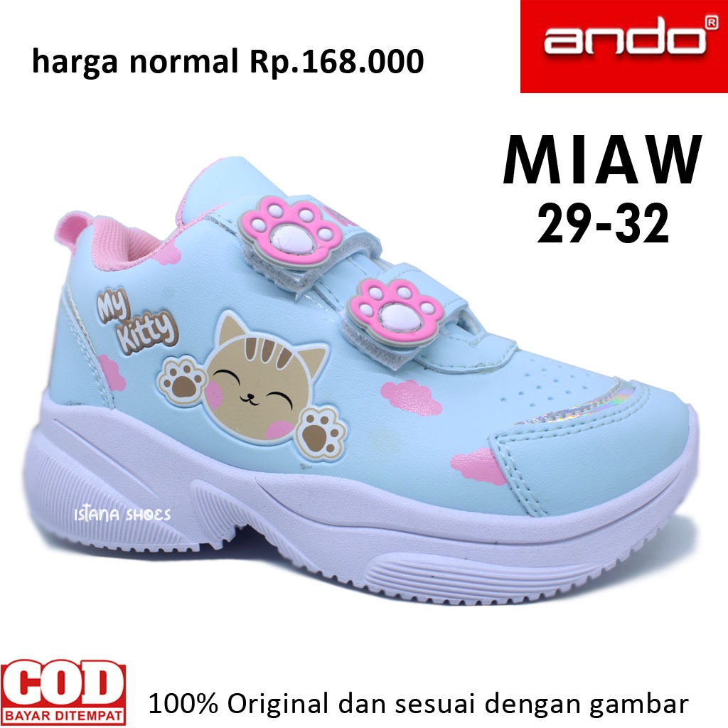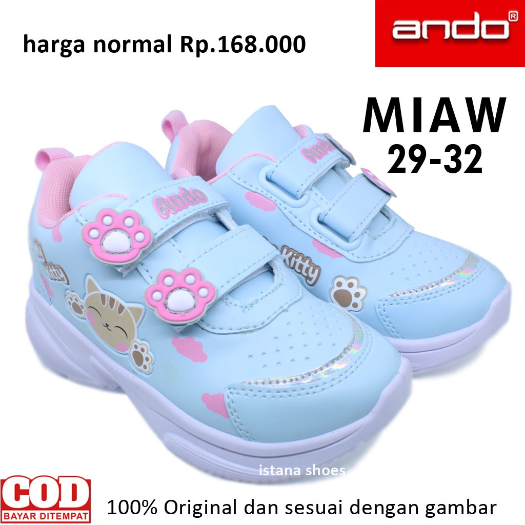 Sepatu Sekolah Anak Perempuan Paud Tk Sd Usia 3 4 5 6 7 Tahun Ando Miaw Biru Langit Pink Snekaers