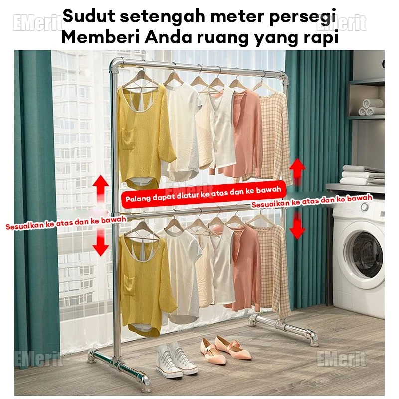 200CM Baru Tabung Baja Jemuran Baju Jemuran Baju Stainless Jemuran Pakaian Stand Hanger Minimalis
