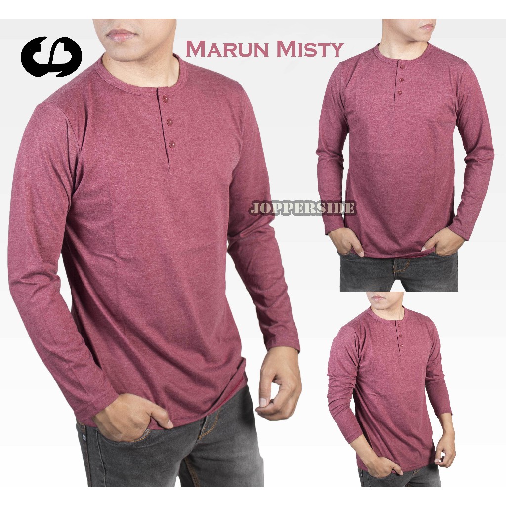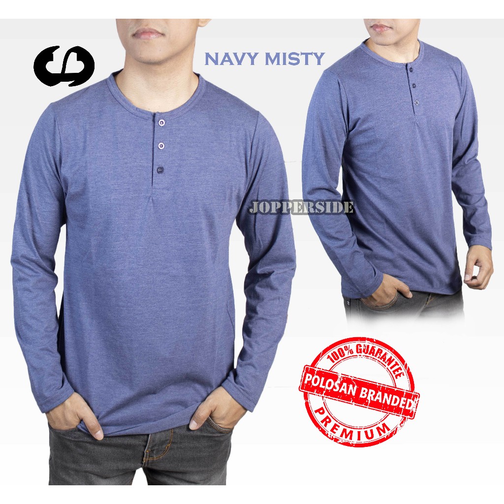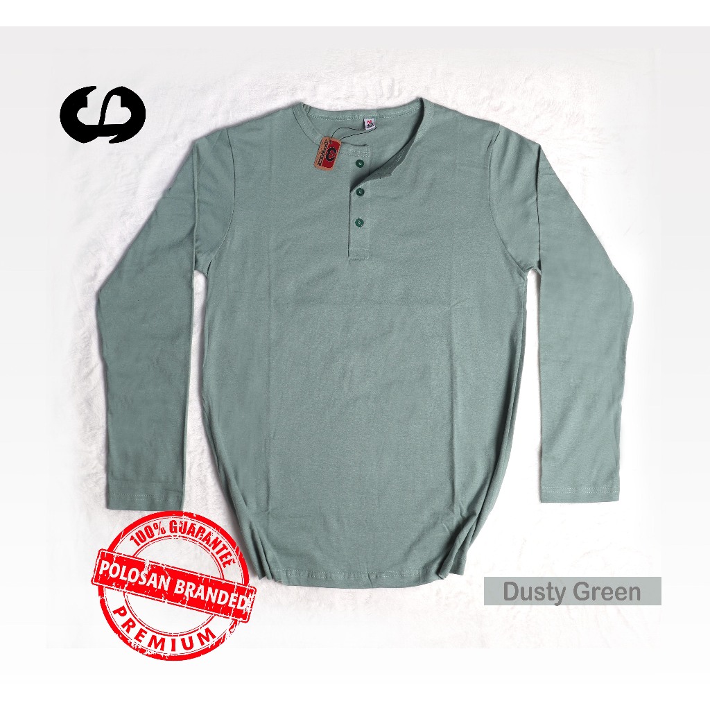 [ PABRIK ] T shirt kaos polos lengan panjang pria henley kancing katun combed premium tb3
