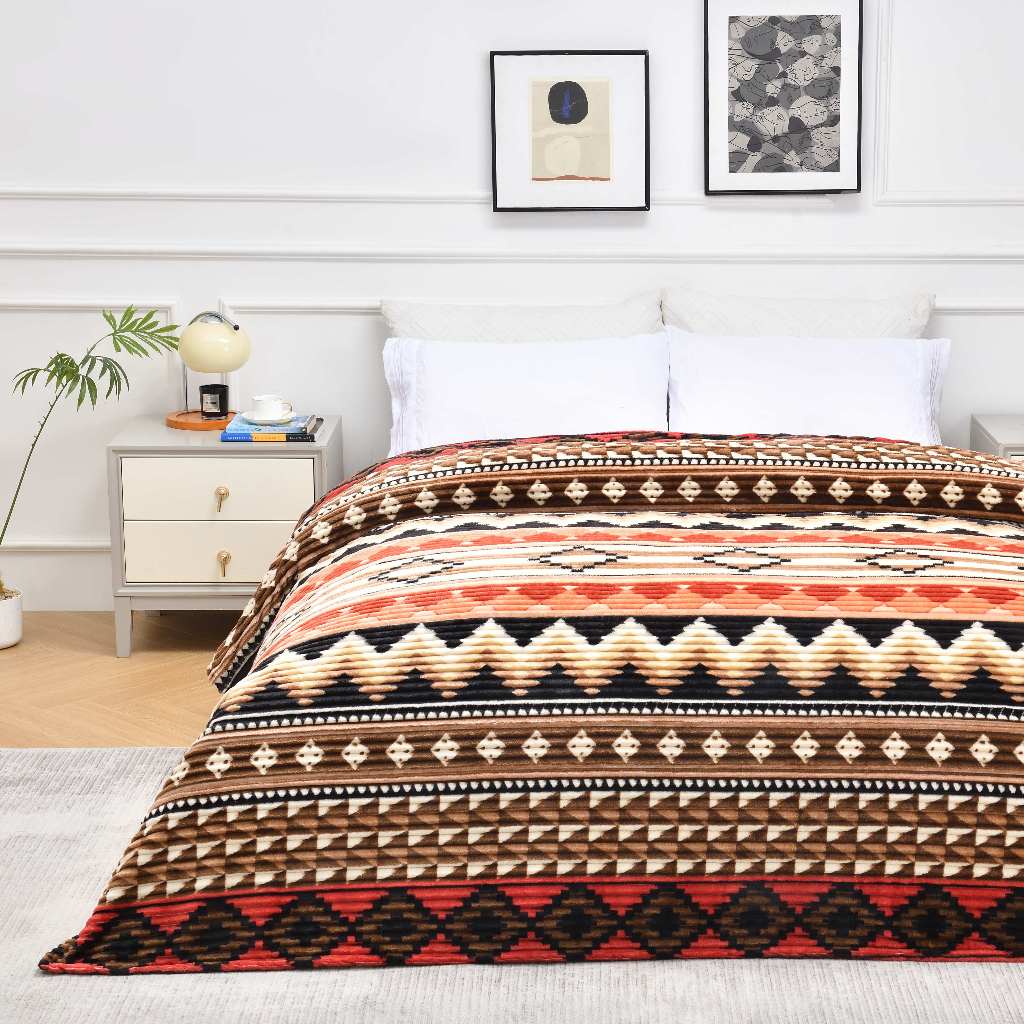 Unique Bohemian Selimut bulu halus Salur Printing 180 x 200 cm