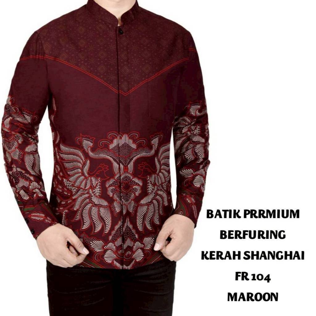 Lina Batik Distro - Fortun Remo Kemeja Batik Pria Lengan Panjang Slim Fit Modern LP0T0NGs Furing Trikot FR104 MERAH MAROON