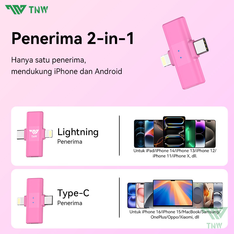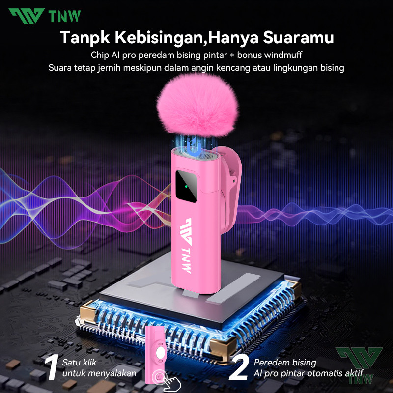 TNW A2/A3 2-In-1 Wireless Microphone Magnetic Mic Wireless Dual Lavalier Mikrofon HP Plug & Play Noise Reduction untuk Live Streaming Konten