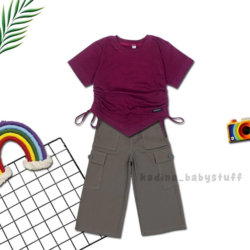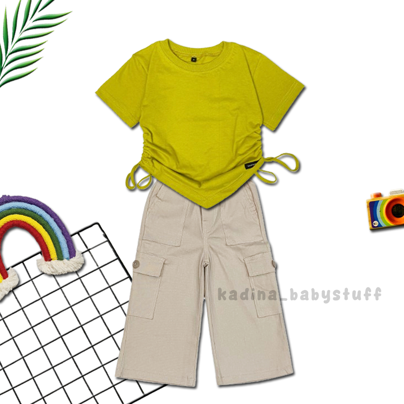 Setelan Anak Perempuan Kekinian Terbaru/Kulot Katun Cargo Import/Combed Serut Polos Usia Anak 2-12 Tahun