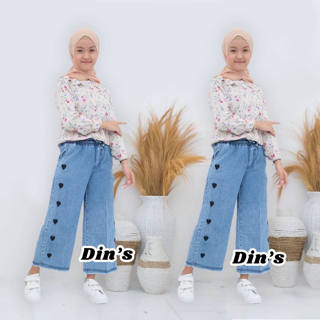 Setelan Anak Perempuan Korean 6-14 Tahun / Set Anak Perempuan 6-14 Tahun Matt Rayon Mix Jeans / Set Love Jeans / Khanza