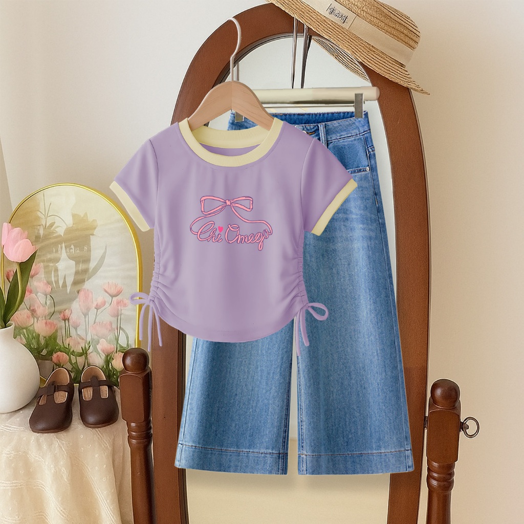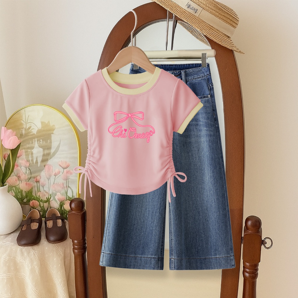 Setelan Anak Perempuan Lucu Kaos Dan Celana Denim | Baju Anak Cewek Stylish Usia 1-12 Tahun | Chi Omega