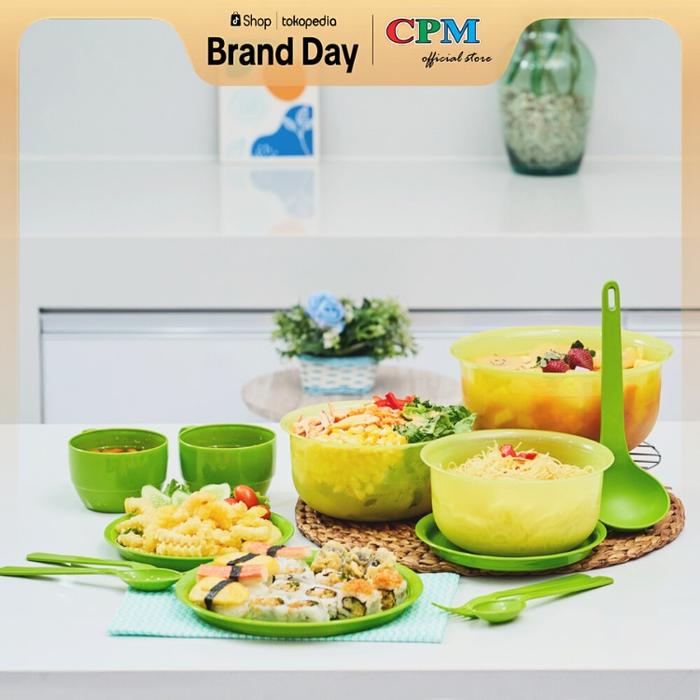 [bayar ditempat][TERMURAH] CPM Harumi Serving Prasmanan Wadah Saji Set of 11 Pcs Mangkok Piring - Green