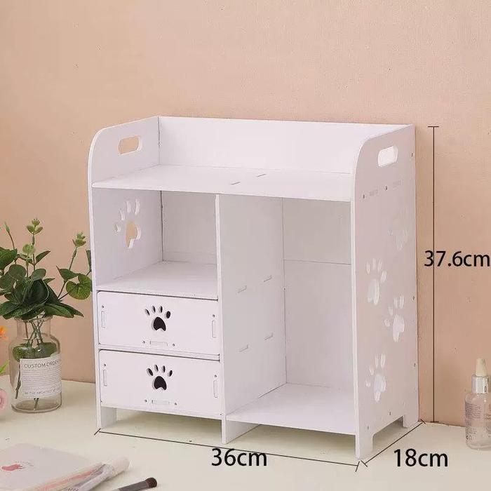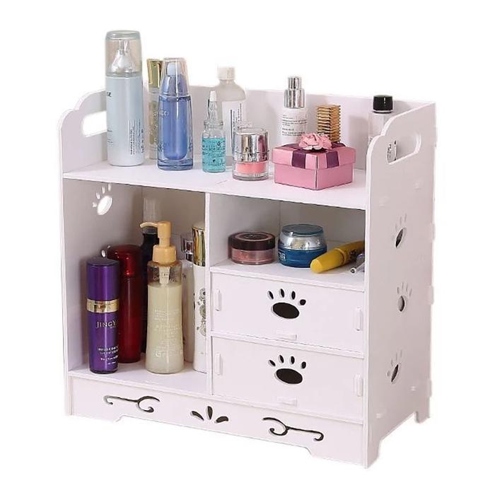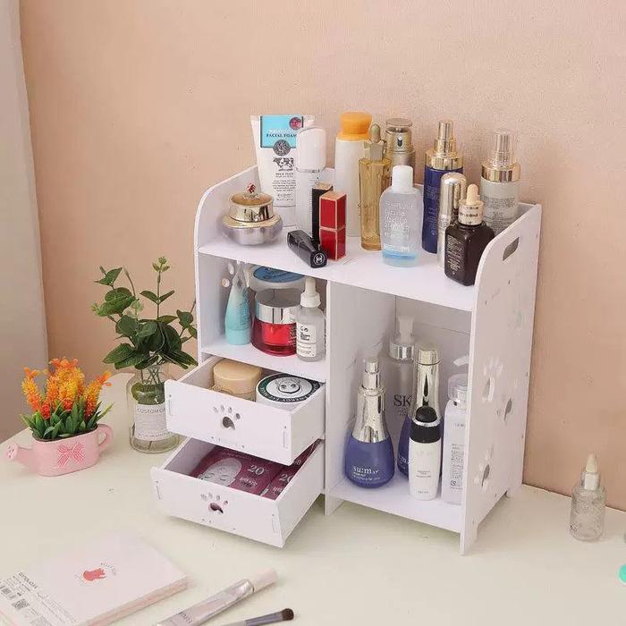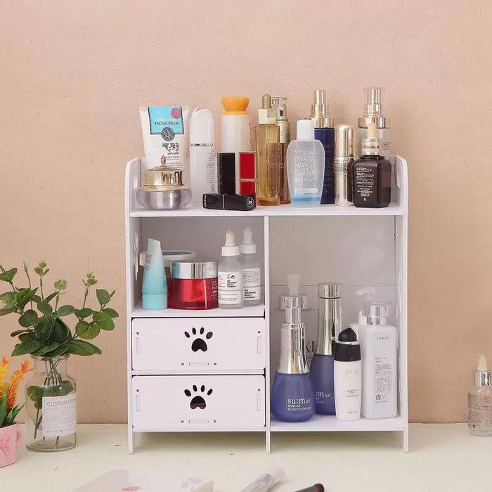 Rak Kosmetik Kayu Kotak WPC Tempat Makeup Tahan Double Drawer Cosmetic Storage