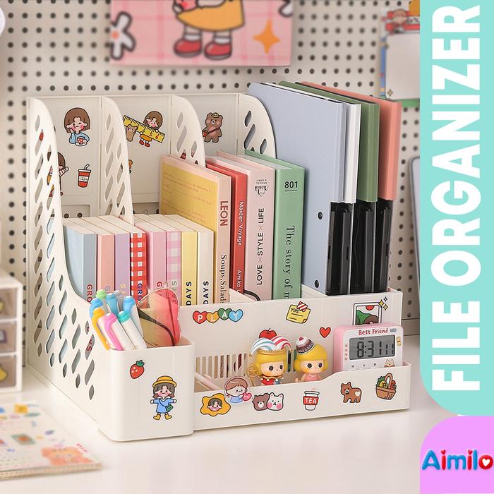 Aimilo - Rak Buku Organizer File dengan Tempat Pena Box File Tempat Buku Tempat Penyimpanan Berkas Kantor - HITAM