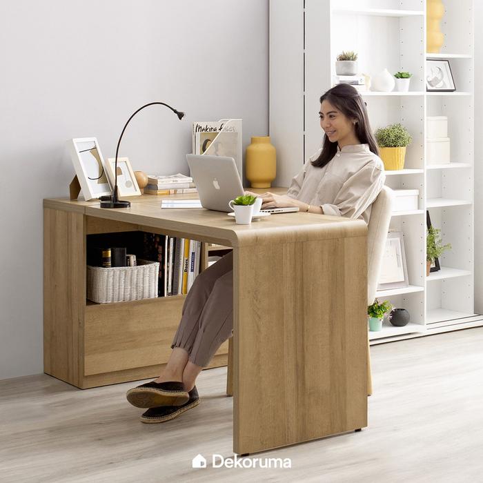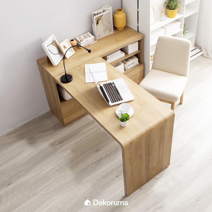 Dekoruma Mika Meja Belajar Sudut dengan Lemari Kabinet dan Rak Susun - Meja Kerja Rumah - Warna