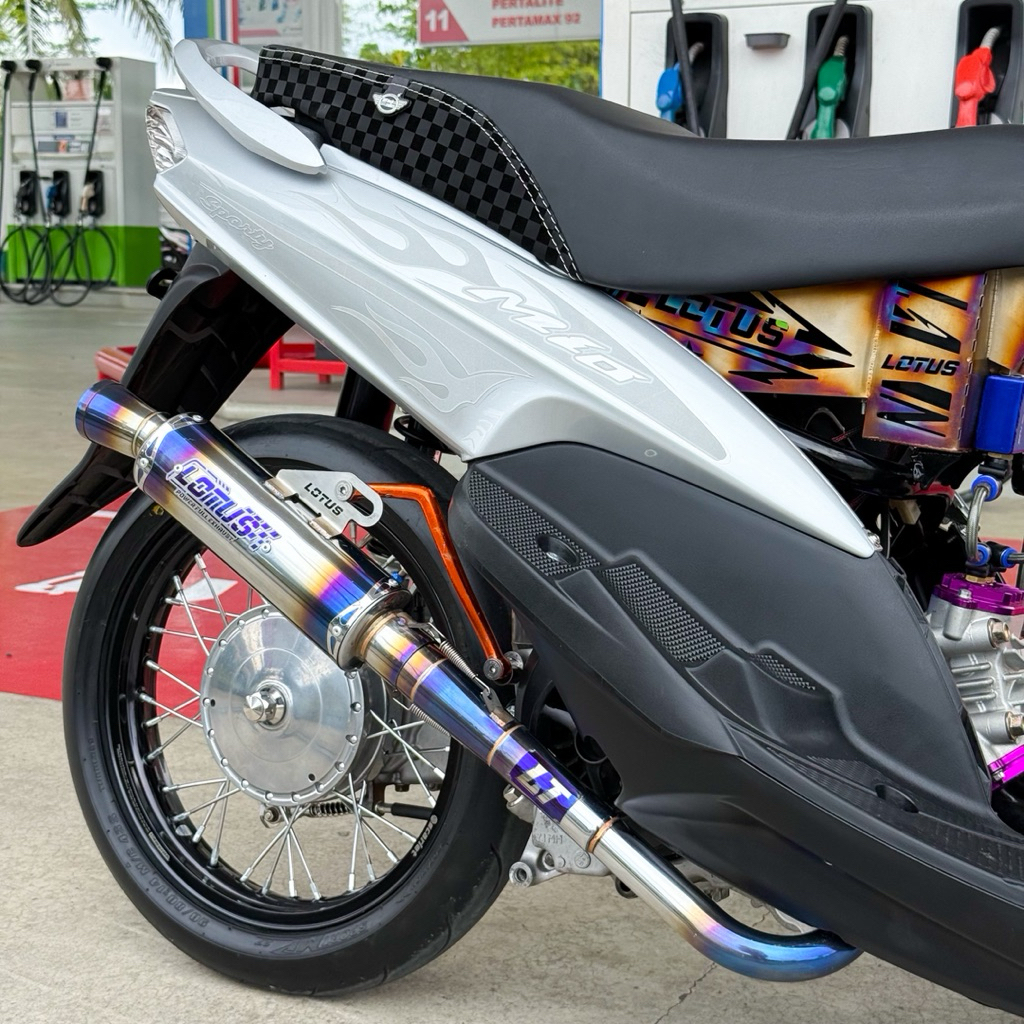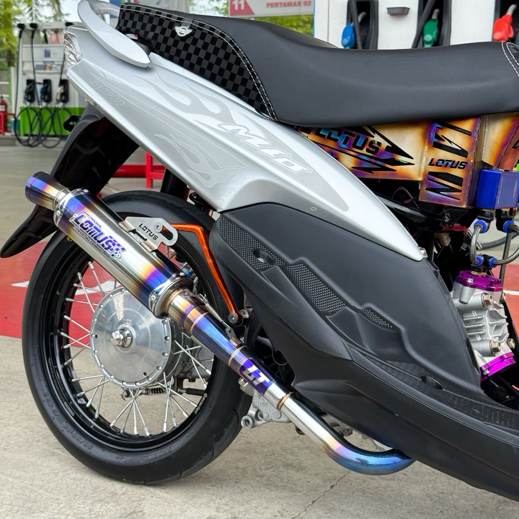 Knalpot ORIGINAL LOTUS TYPE SC. EXTRIM BLUE STANDAR RACING CEKLIS MONCONG SHIJIRO PNP MIO SPORTI, MIO SMAILE, MIO SOUL KARBU knalpot sudah tinggal pasang saja
