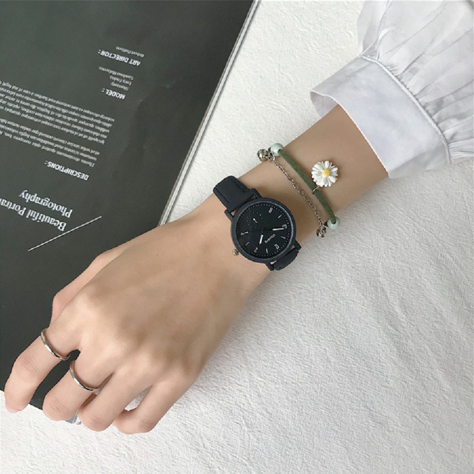 Jam Tangan Quartz Wanita Polos Strap PU Casual Analog Fashion Wanita Watch