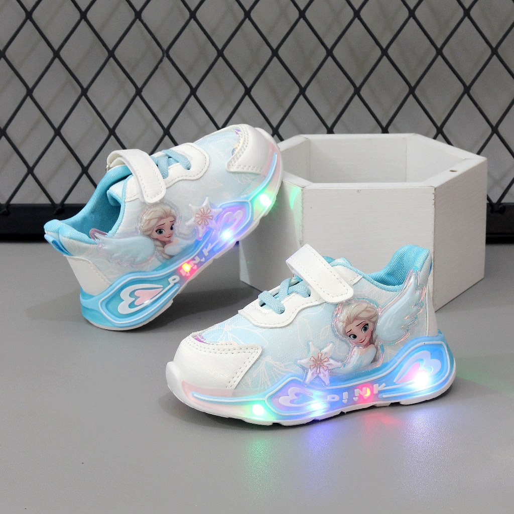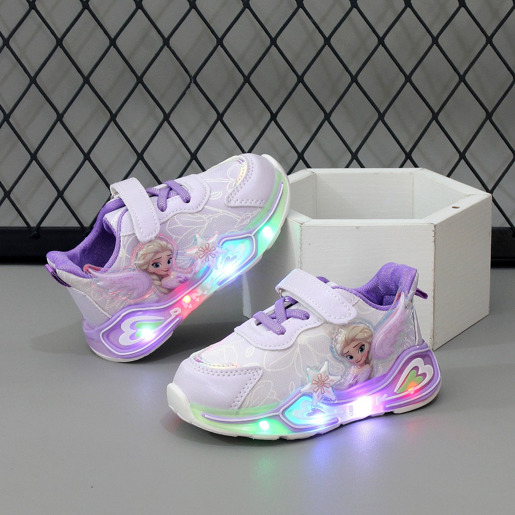 Sepatu Lampu Nyala Led Frozen Elsa Anak Perempuan Warna Pink Ungu Biru Ukuran 21-30 - Flt510