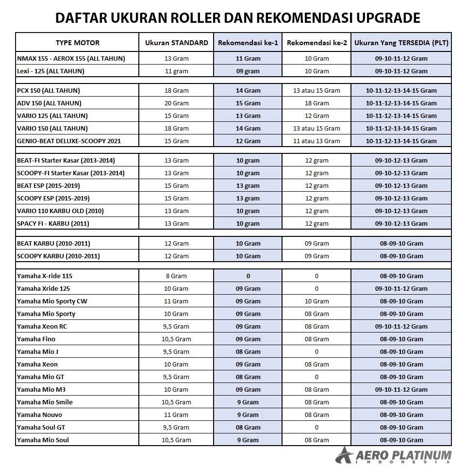 PAKET UPGRADE CVT NMAX 155 PAKET KIRIAN LEXI PER CVT 1500 ROLLER NMAX 9 10 11 12 GRAM AEROX 155