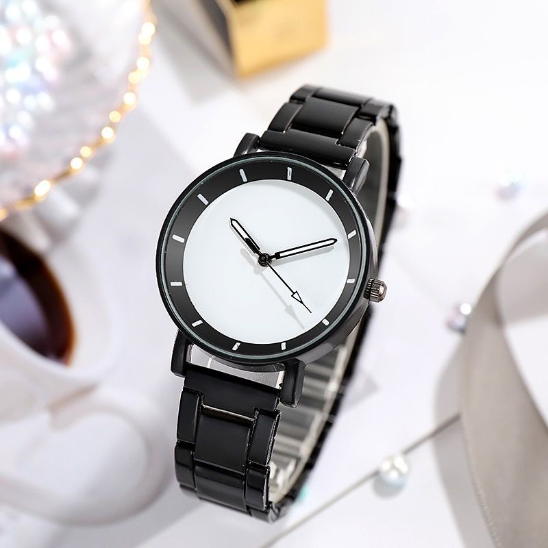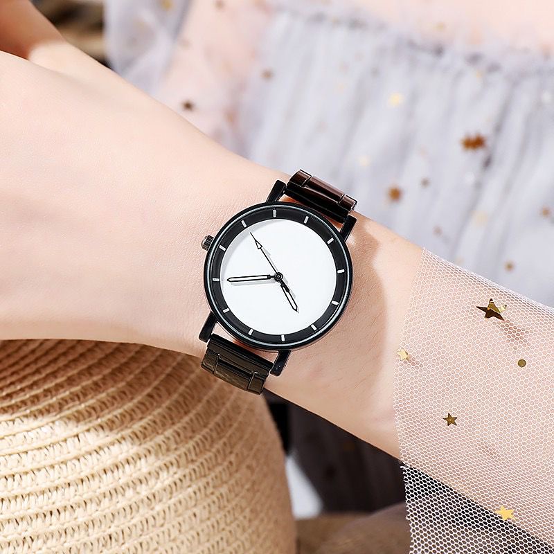 WBS Jam Tangan Wanita Analog Quartz Casual Fashion Strap Rantai Hitam Stainless Steel Couple Pria JF094