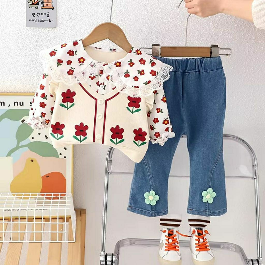 Setelan Anak Perempuan 1Tahun - 5Tahun Setjins Sweater Motif Cery Rajut Setcel Anak Cewek