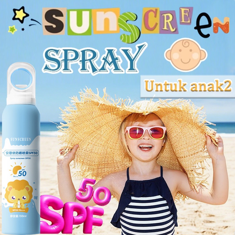 Spray Sunscreen Anak & Bayi Sunscreen Bayi & Anak Tabir Surya Anak Dan Bayi 150ml SPF 50+ PA+++ Tahan air&keringat, Alam