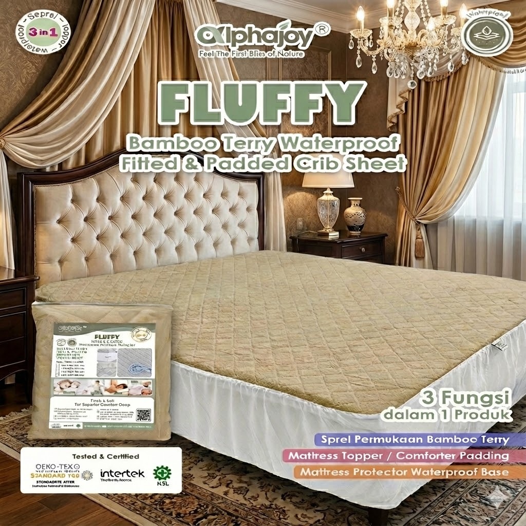 Alphajoy Fluffy Premium Bamboo Terry Sprei Waterproof Mattress Protector Bed Comforter Matras Topper Anti bocor serat Ba