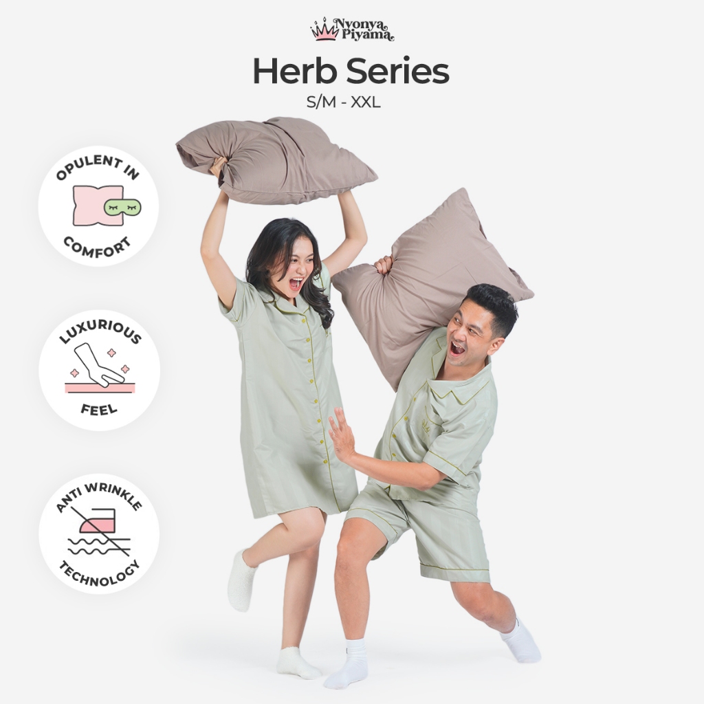 [BEST SELLER] Nyonya Piyama Poly Bamboo Set Classic Couple (Basil Polos Herb)
