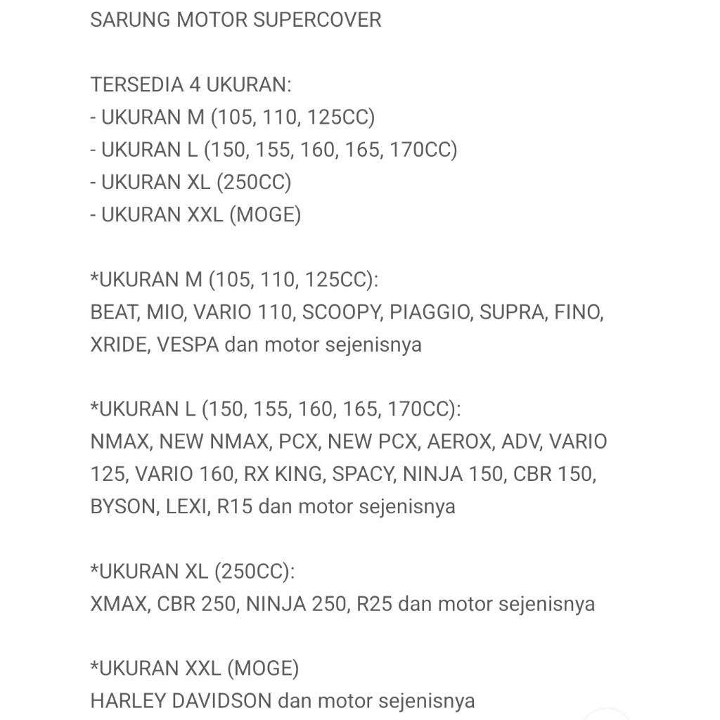 Sarung Motor Super Cover 105Cc-250Cc Nmax Aerox Pcx Vario Adv Cbr Scoopy Beat Xmax Waterproof