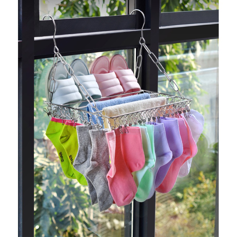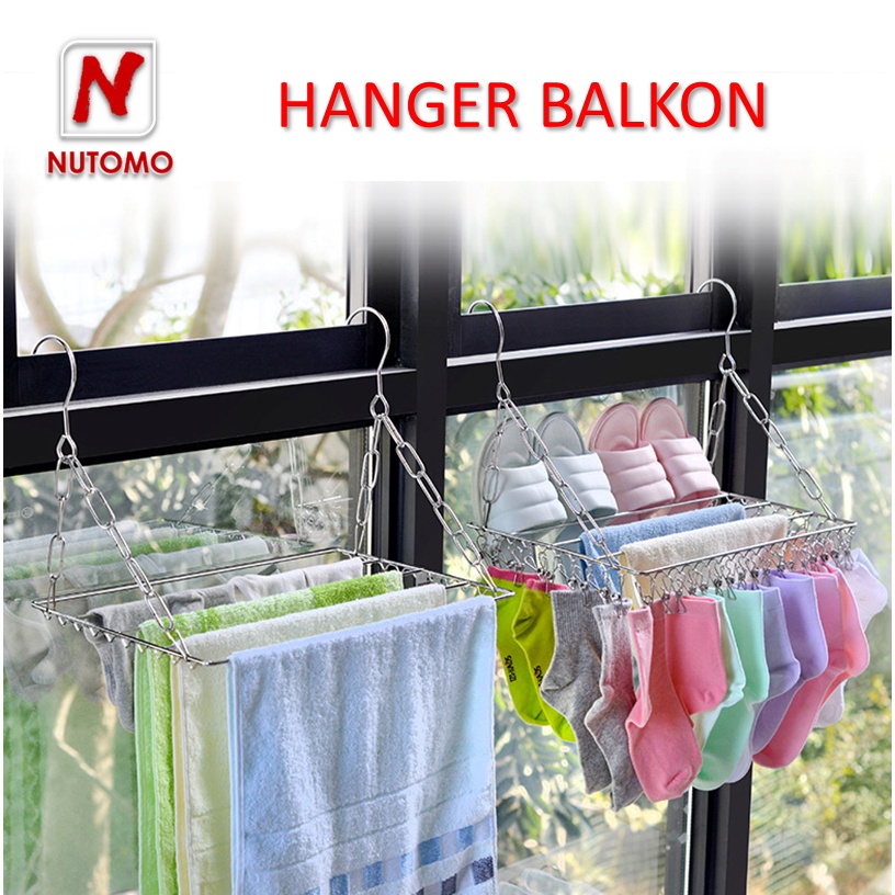 Gantungan Jemuran Baju Hanger Balkon Stainless 36 Jepit Rak Gantung Pakaian Serbaguna
