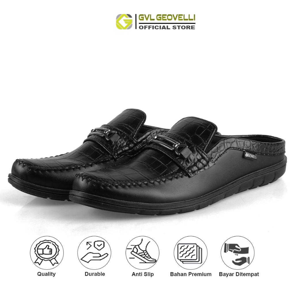 Gvl Geovelli 1957 Moscow Black Sandal Butong Hitam Sendal Pria Kasual