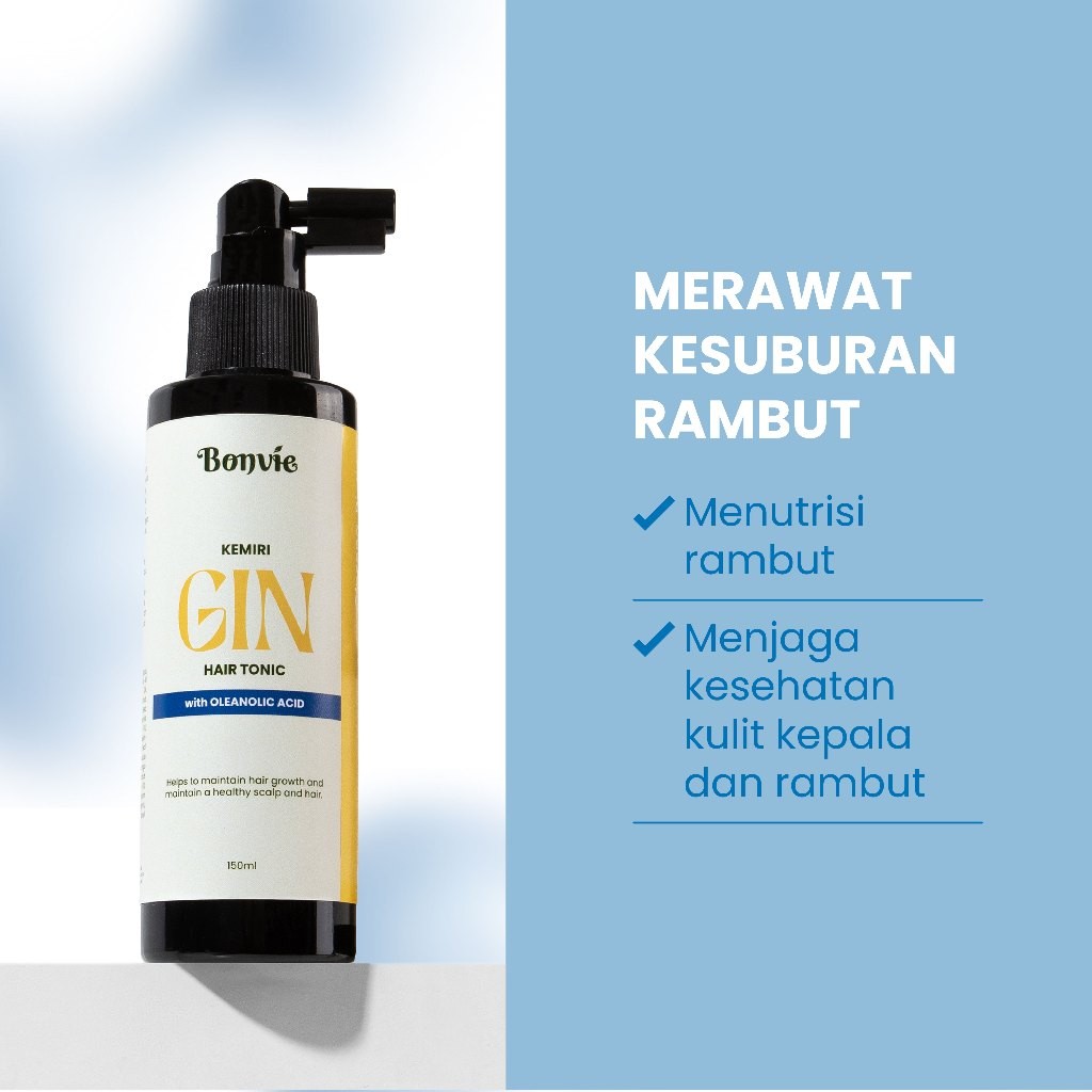 Bonvie Anti Hairfall Kemiri Gin Hair Tonic 150ml with Oleanolic Acid, Biotin, Ginseng, Kemiri, Peppermint & Aloe Vera |