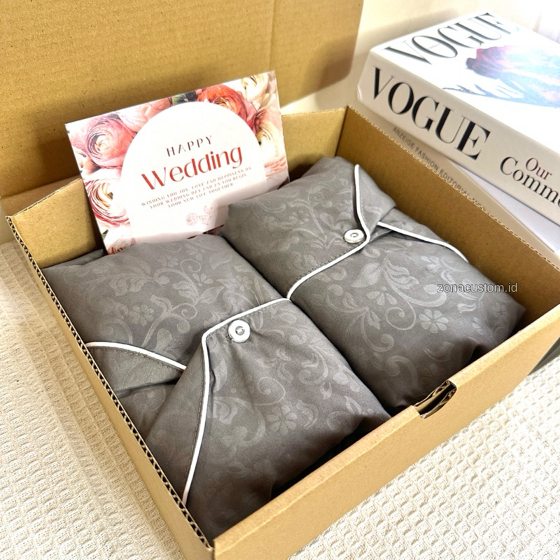 Hampers Wedding Piyama Couple Set | Kado Pernikahan Anniversary Pasangan Hadiah Valentine Seserahan Birthday Gift Box zonacustom semarang