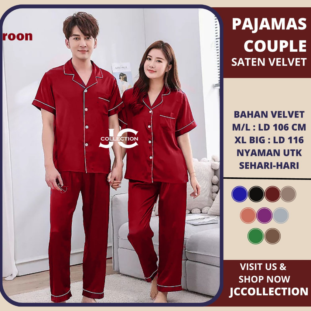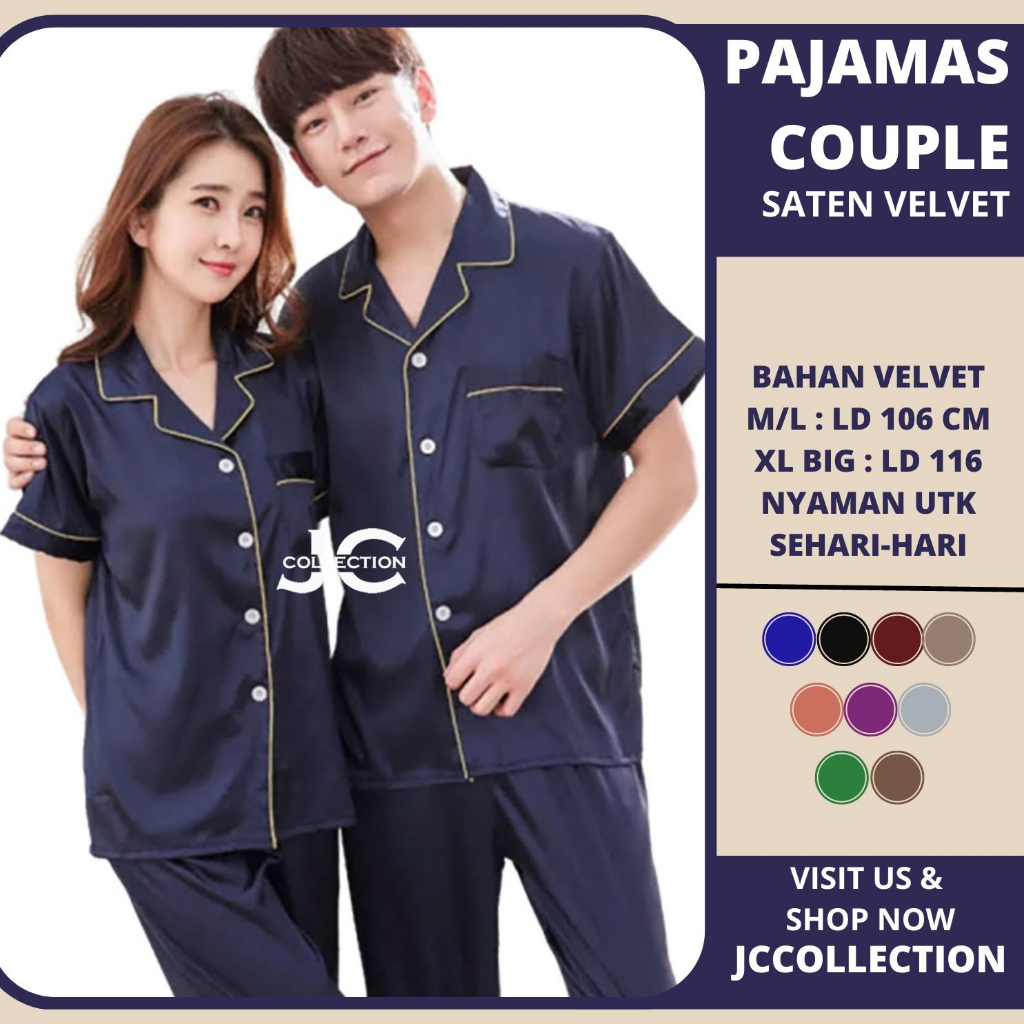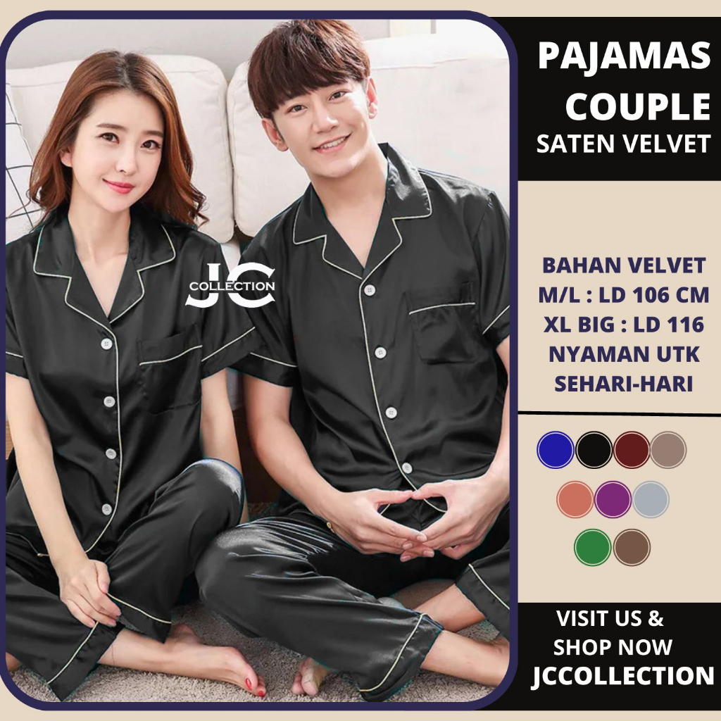 Piyama Couple Pasangan Lengan Pendek Satin CP - JCCollections