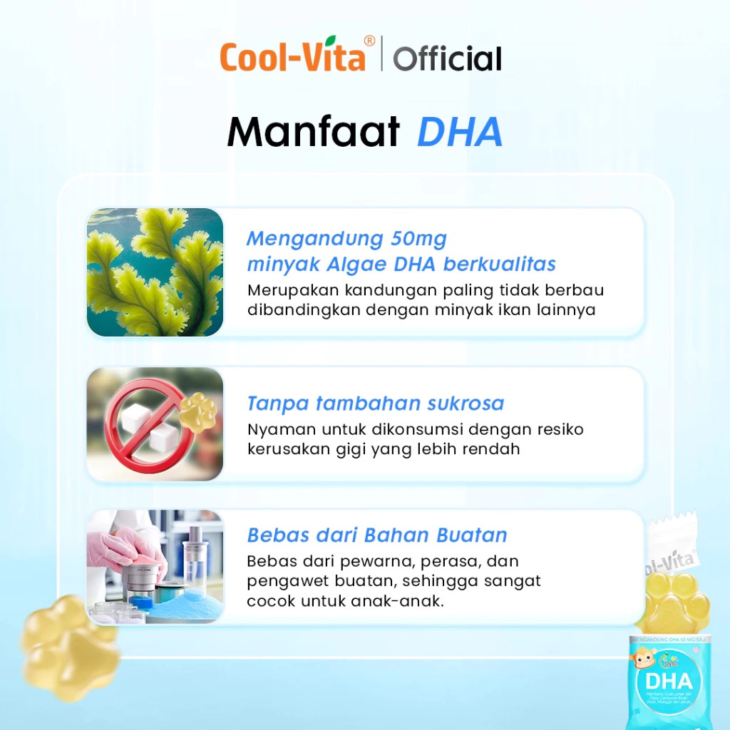 Coolvita 3 Box/3 PouchDHA Gummy - Suplemen Vitamin Anak dengan Minyak Alga DHA 50mg Omega 3 Alternatif Minyak Ikan untuk Kesehatan Mata
