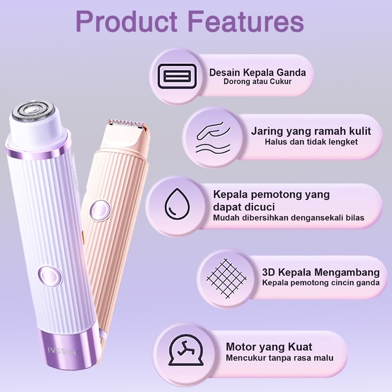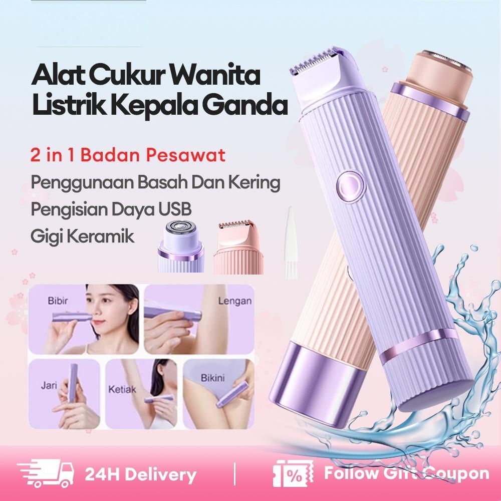 2 IN 1 Alat Cukur Wanita Alat Cukur Bulu Kemaluan Mini Epilator Shaver Hair Pencukur Bulu Ketiak Elektrik Pencukur Bulu