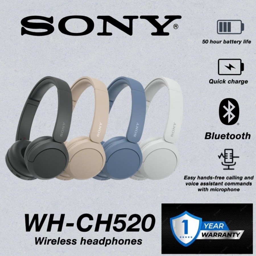 Sony WH-CH520 On Ear Wireless Headphone Bluetooth With Microphone - Garansi Resmi