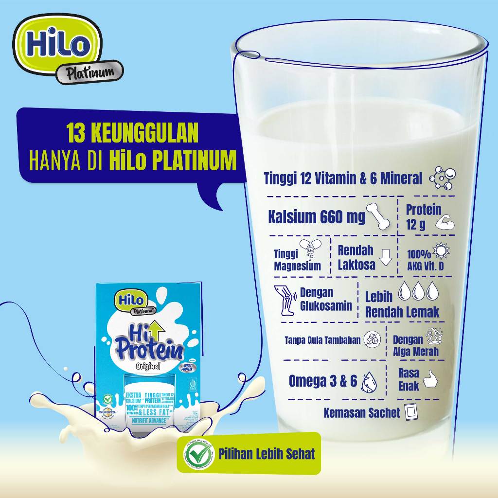 HiLo Platinum + HMB (8 Sachet) - Susu Tinggi Protein Jaga Massa Otot Usia Dewasa