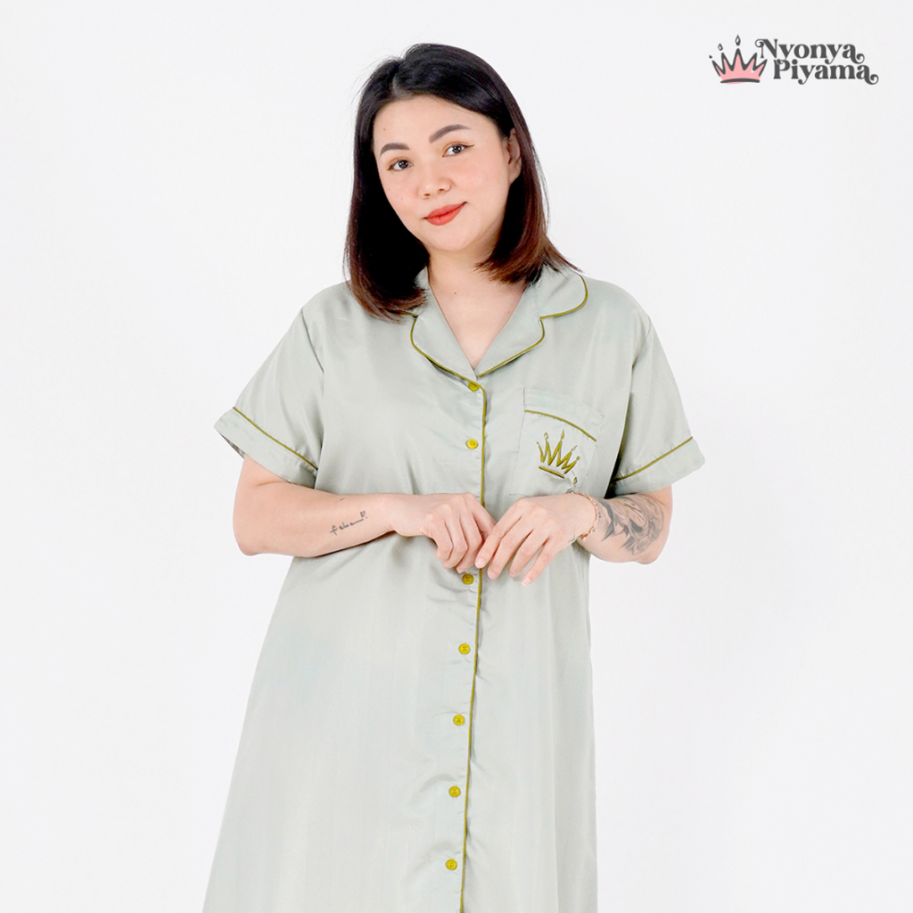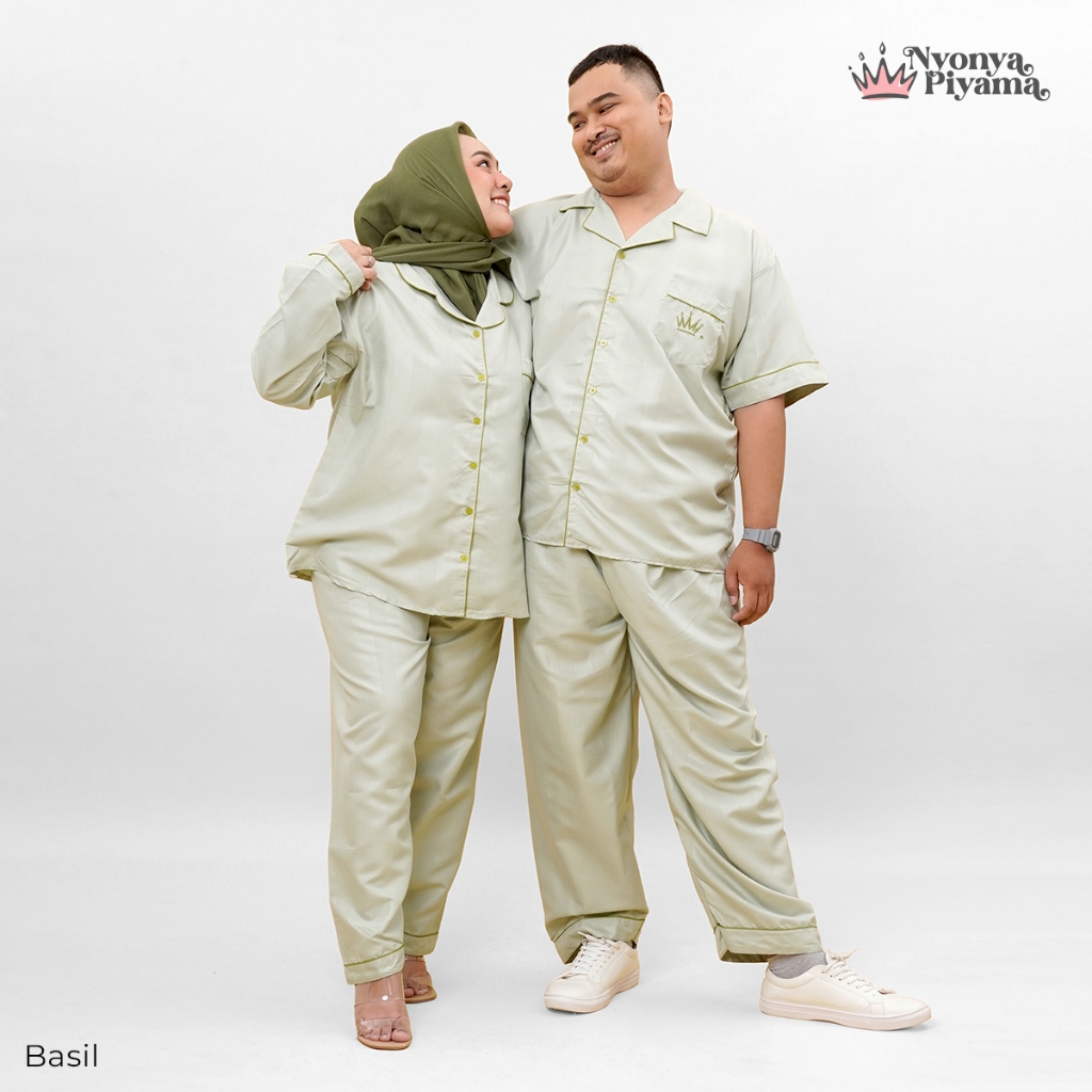 [BEST SELLER] Nyonya Piyama Poly Bamboo Set Piyama Couple (Basil Polos Herb)
