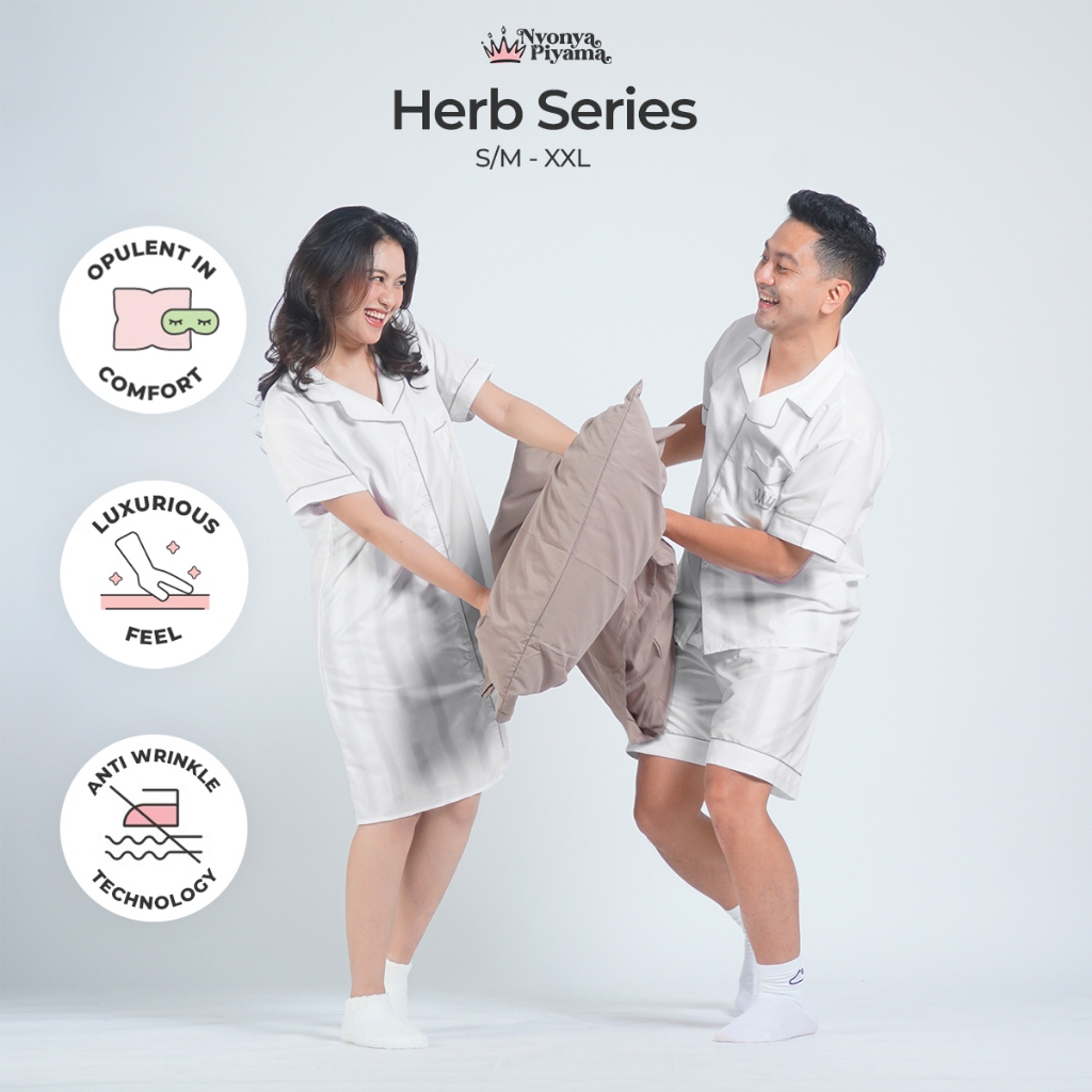 [BEST SELLER] Nyonya Piyama Poly Bamboo Set Classic Couple (Garlic Herb)